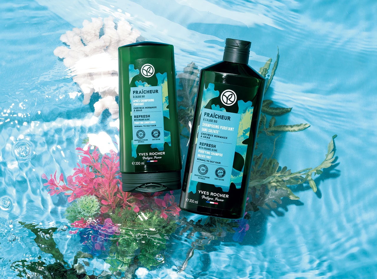 強い日差しとともに増える汗や皮脂。蒸れやベタつき、においなど、髪や地肌の夏トラブルが気になります。この季節も植物のエキスパート、イヴ・ロシェが育てた海藻※2の力がお役立ち。