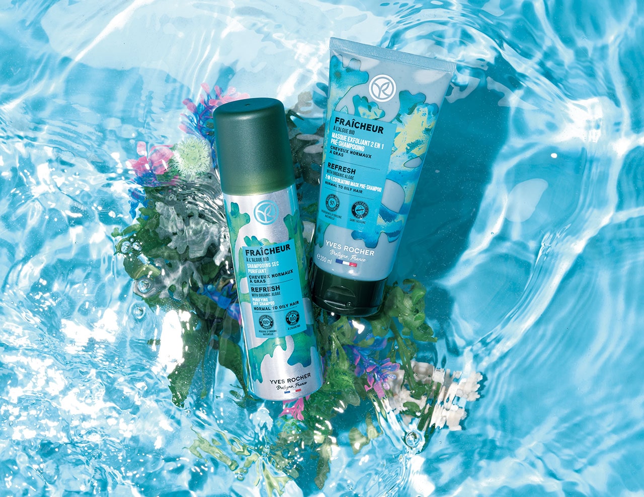 フランス・ブルターニュ地方のウエサン島。イヴ・ロシェはここでアルギー※2という紅色をした海藻の有機栽培に取り組んでいます。手摘みで収穫した貴重なオーガニックアルギー※2を惜しみなく配合しているのが、夏の定番「ピュアリフレッシュ」ライン。毛穴にたまった汚れや余分な皮脂を取り除きながら、地肌に必要な潤いはたっぷり与え、頭皮のコンディションを整えます。デイリーインバスケアだけでなく、スペシャルケアのマスクと日中大活躍のドライシャンプーまで、海のミネラルに身を委ね、爽やかな髪と頭皮で夏を思いきり楽しみましょう。