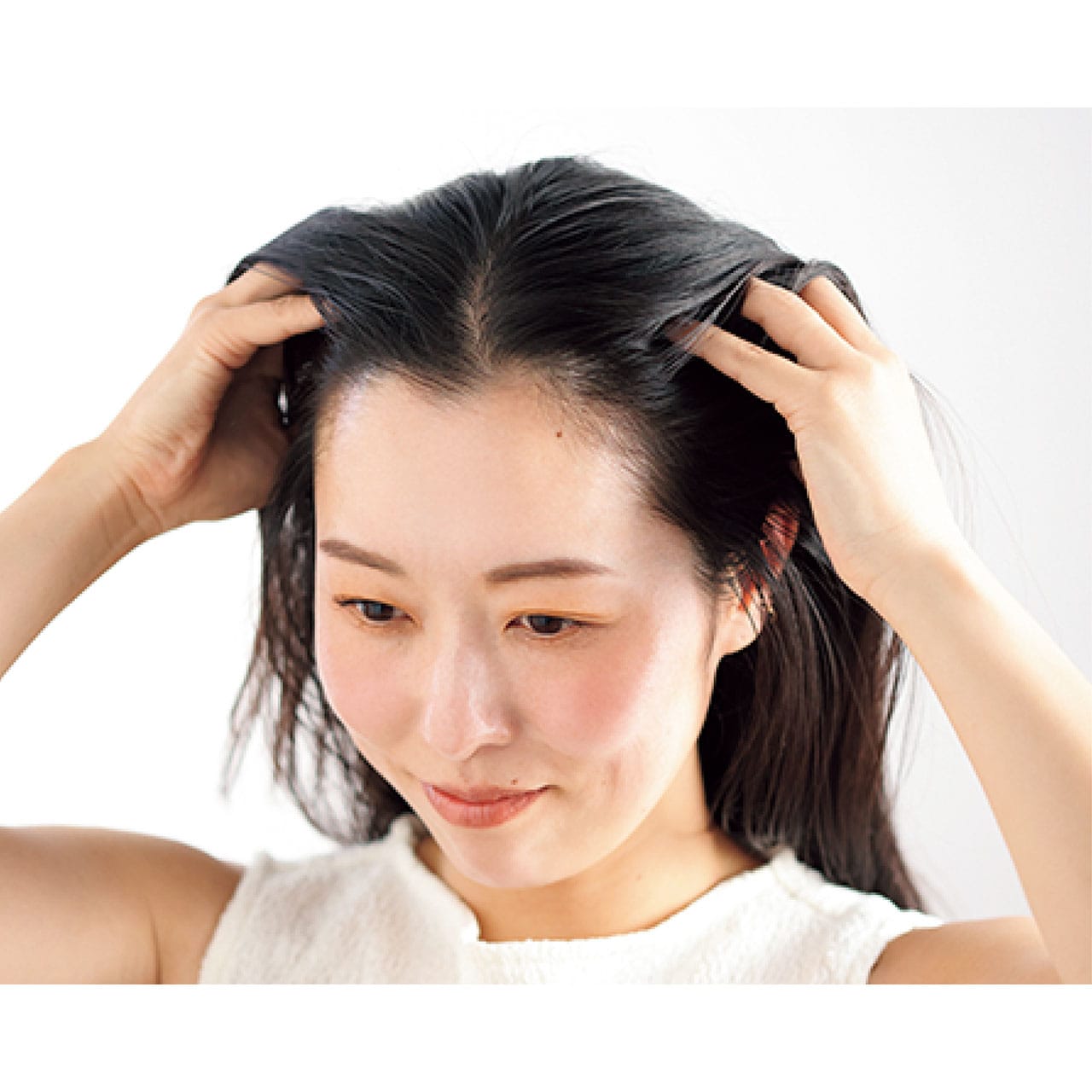 乾いた髪に使用。地肌に塗って3~5分おき、お湯を加えて指の腹でマッサージ。その後いつものシャンプーを。