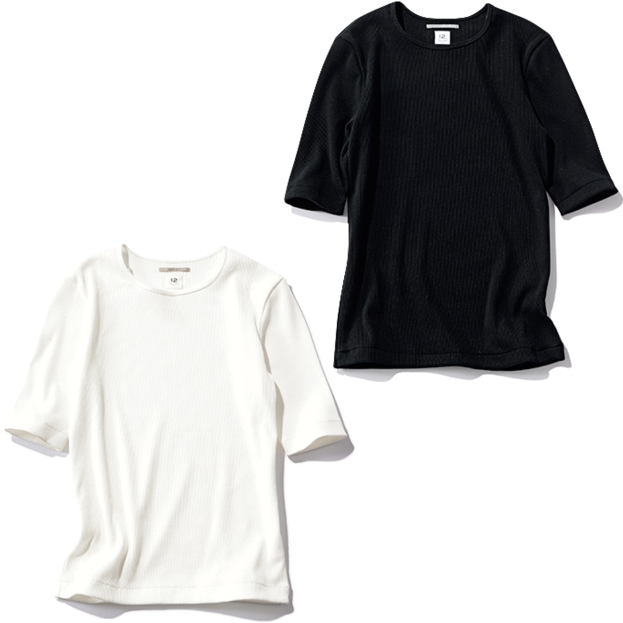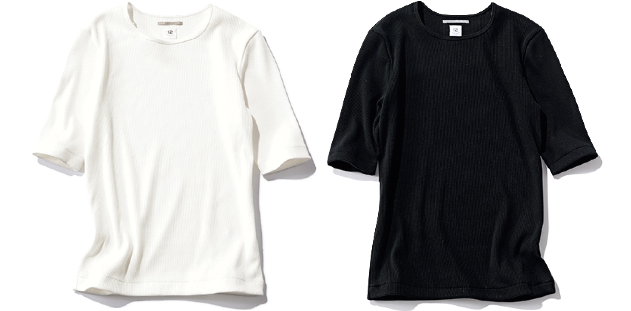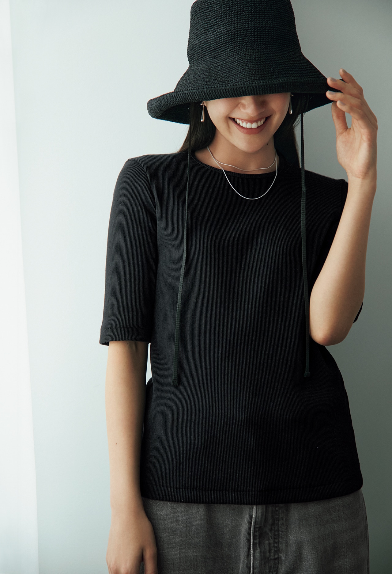 シルエットやディテールにとことんこだわって、ジュエリーが映える究極のシンプルTシャツが完成しました。ほどよいコンパクトさや体を華奢に見せてくれるリブ使いや五分丈袖など、ありそうでなかった一枚に!