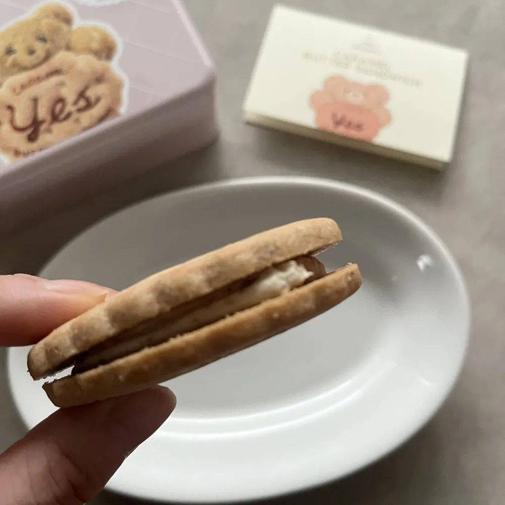 「サクサクのサブレにレーズン、キャラメル、バタークリームがサンドされていて、常温で食べるとキャラメルがトロッとしておいしい〜♡重たくなくて、バターサンドなのに軽い!キャラメルのとろけ具合とバターのコク、レーズンの甘酸っぱさが絶妙なんです♡