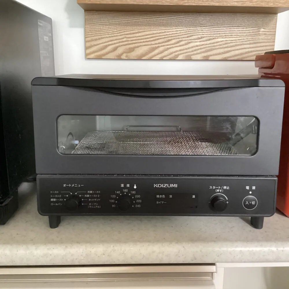 「続いてはトースター。わが家はKOIZUMIを使用しています。食パンは4枚同時にやくことができる庫内の広さ!冷凍トースト・ロールパンなど7種類のオートメニューがあるのも魅力的です♪
