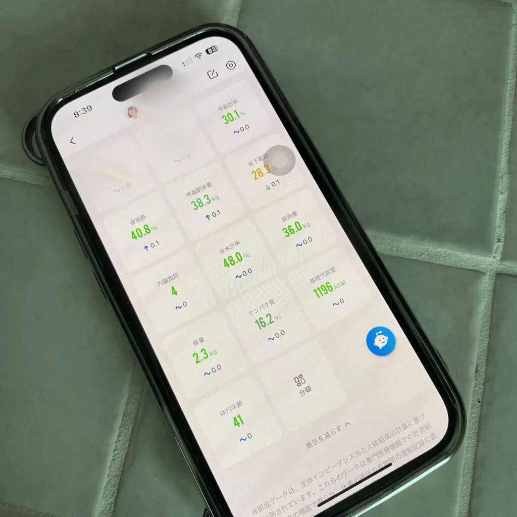 測定項目が増えたことで、恐らく食べたものや断食で変化する水分量もわかるようになるんじゃないかなーと期待しております。より詳しくダイエットや身体の管理が出来るはず」