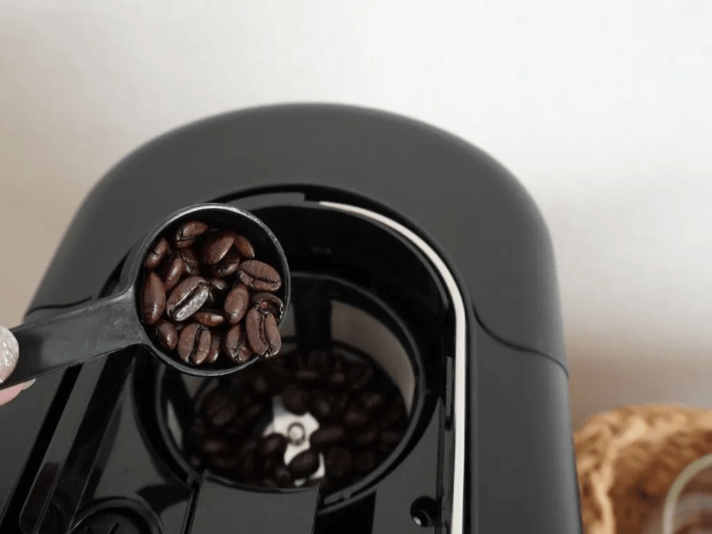 「一番上の蓋を開けてコーヒー豆と給水タンクに必要な量の水をセット。最大カップ4杯分淹れることができます。わが家は、マグカップ2杯分淹れることが多いです〜。