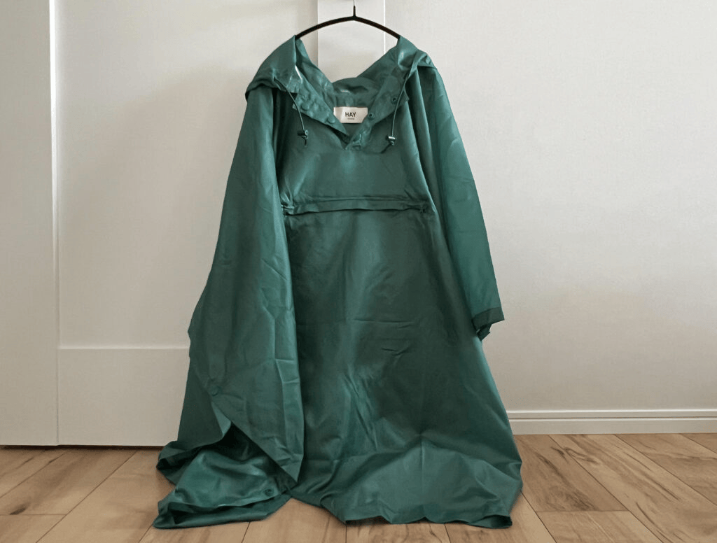 「レインコートのしわ伸ばし。衣類スチーマーでさっとしわが伸びるぞ!という情報を入手しまして早速取り掛かりました。以前LEEの家電特集で家電女優、奈津子さんがおすすめされた衣類スチーマーです。
