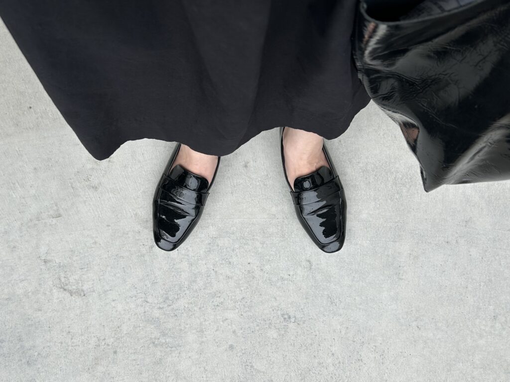 おまけ:憂鬱な雨の日はADAM ET ROPE’(アダム エ ロぺ)晴雨兼用レインローファーとTEMBEA(テンベア)のエナメルトートで出勤します。