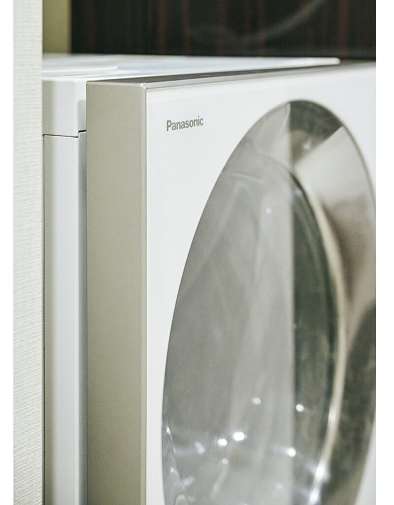 「朝ここからワンピース(左)を出して着替えます。『パナソニック』のキューブルは洗剤自動投入の機能があって便利。デザインもお気に入りです」