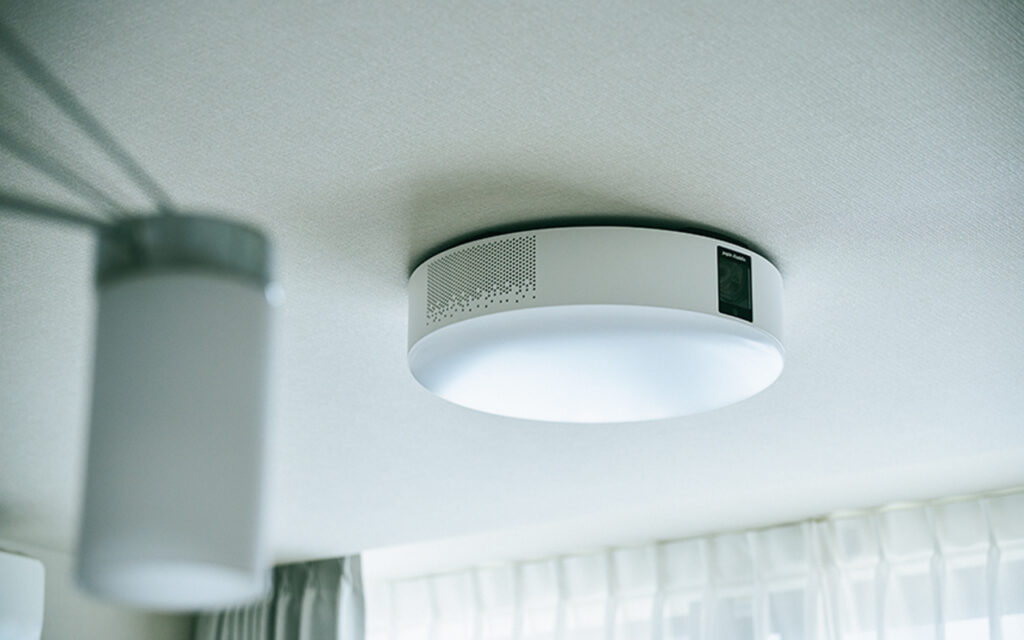 娘さんの出産前にテレビとテレビ台を手放し、代わりに天井に取り付けるプロジェクター「ポップインアラジン2」を。「リビングを広く使えてテレビ台の掃除が不要。映画を大迫力で楽しめます」