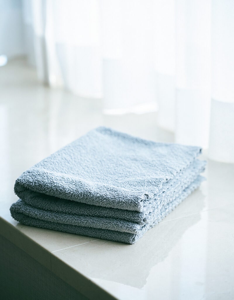 「バスタオルはフェイスタオルに替えるなど、タオルの縮小化を図っていますが『SOU TOWEL SHOP』のヘアドライタオルは外せません。吸水力が高く、ドライヤーの時間を大幅に短縮できるんです。私と娘用に2枚常備」