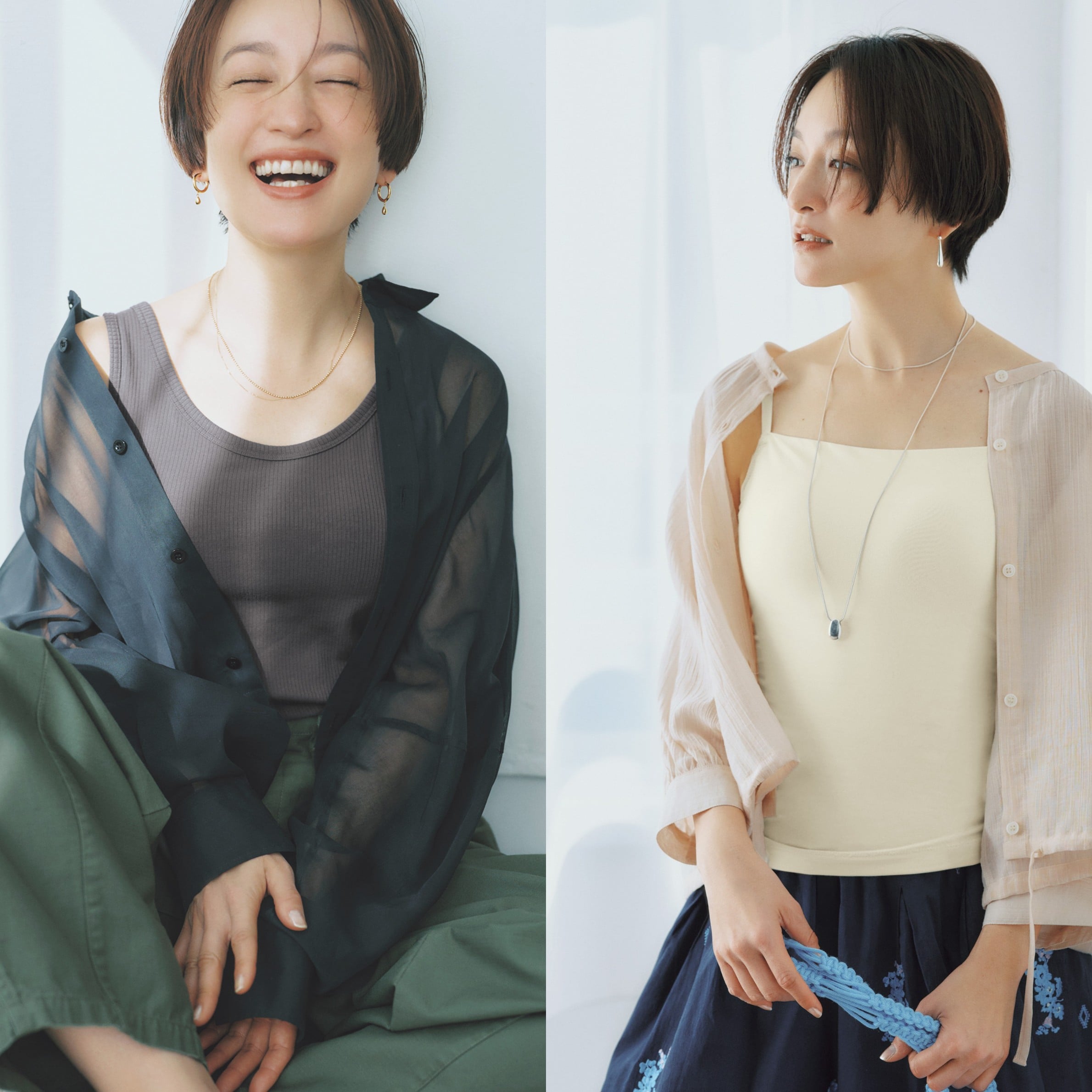 肌に触れるとひんやり冷たい接触冷感のカットソー素材で、汗ばむ夏もぐっと快適に。