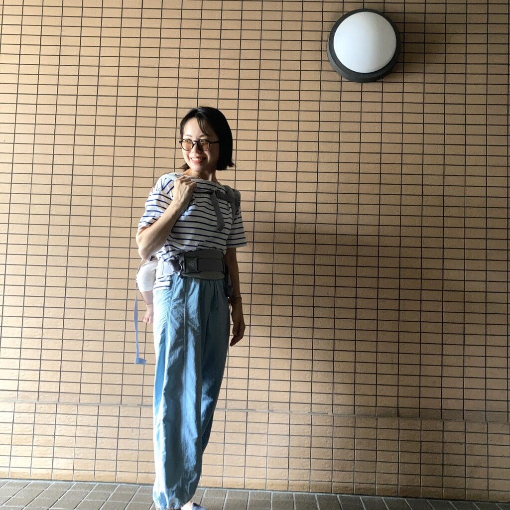 「今期増えたブルーは、無印良品のボーダーTシャツとUNIQLOのギアパンツ、そしてTOP写真にある、STATE OF ESCAPEのトートバッグ。ブルーの万能さを実感している今季です」