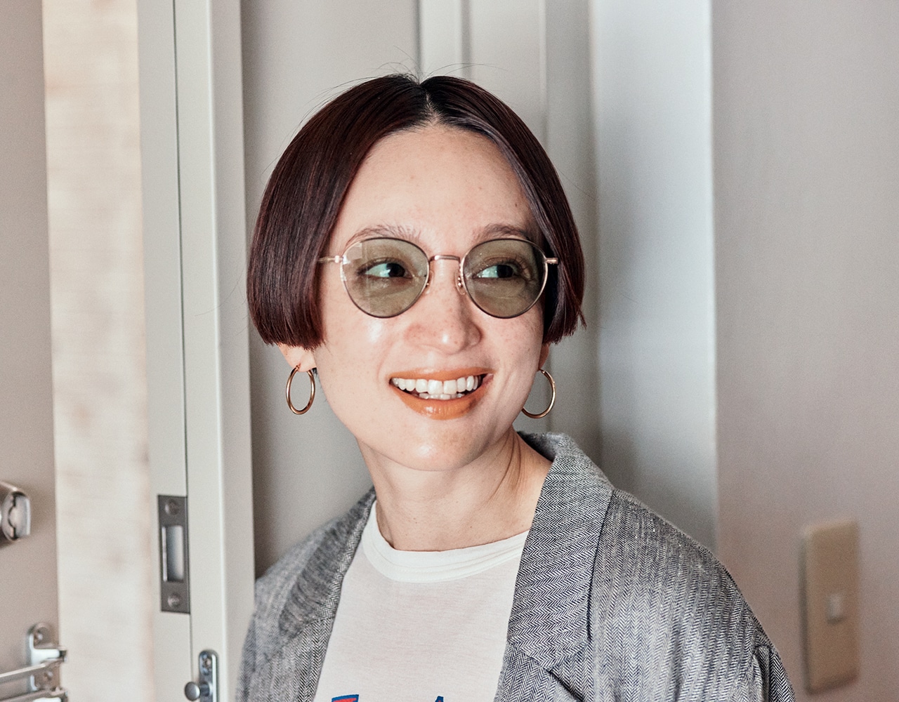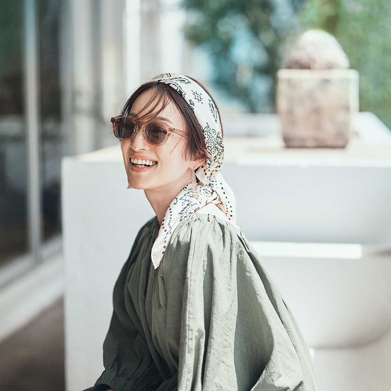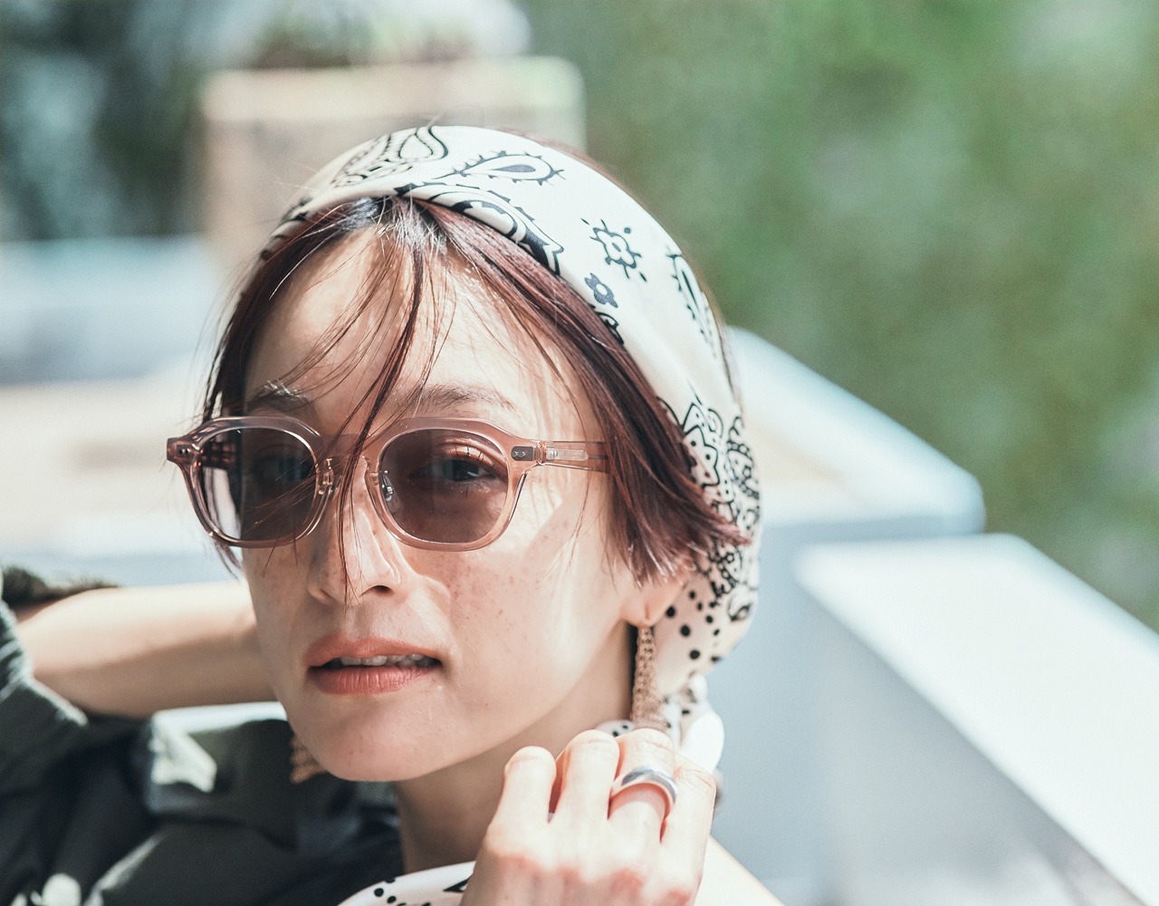 薄めのカラーレンズ&フレームなら表情を邪魔せず見た目も涼しげ!リラックスしてかけられるから、表情も自然とやさしげに
