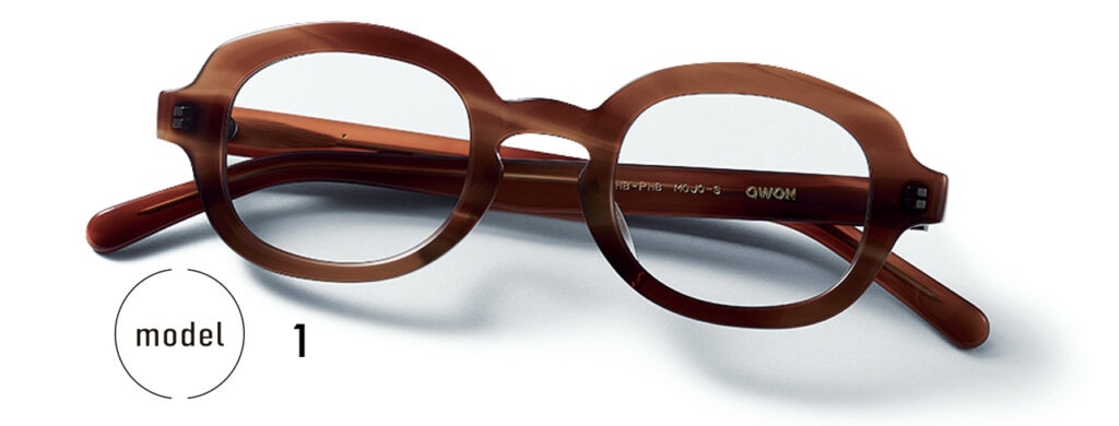 丸みを帯びたボストンフレームで、どんな人も柔和な印象に。レンズまで淡いブラウンなら、相手から目元が見えやすく、肌なじみだって抜群!