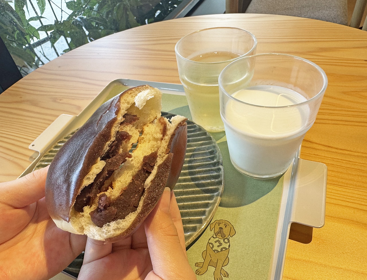 我が家は、この日販売されていた菱田ベーカリーの「羊羹ぱん」に「高知の牛乳」と「池川一番茶 親子茶」をチョイス。(あんぱん1種につきドリンク2種のセット¥500)。