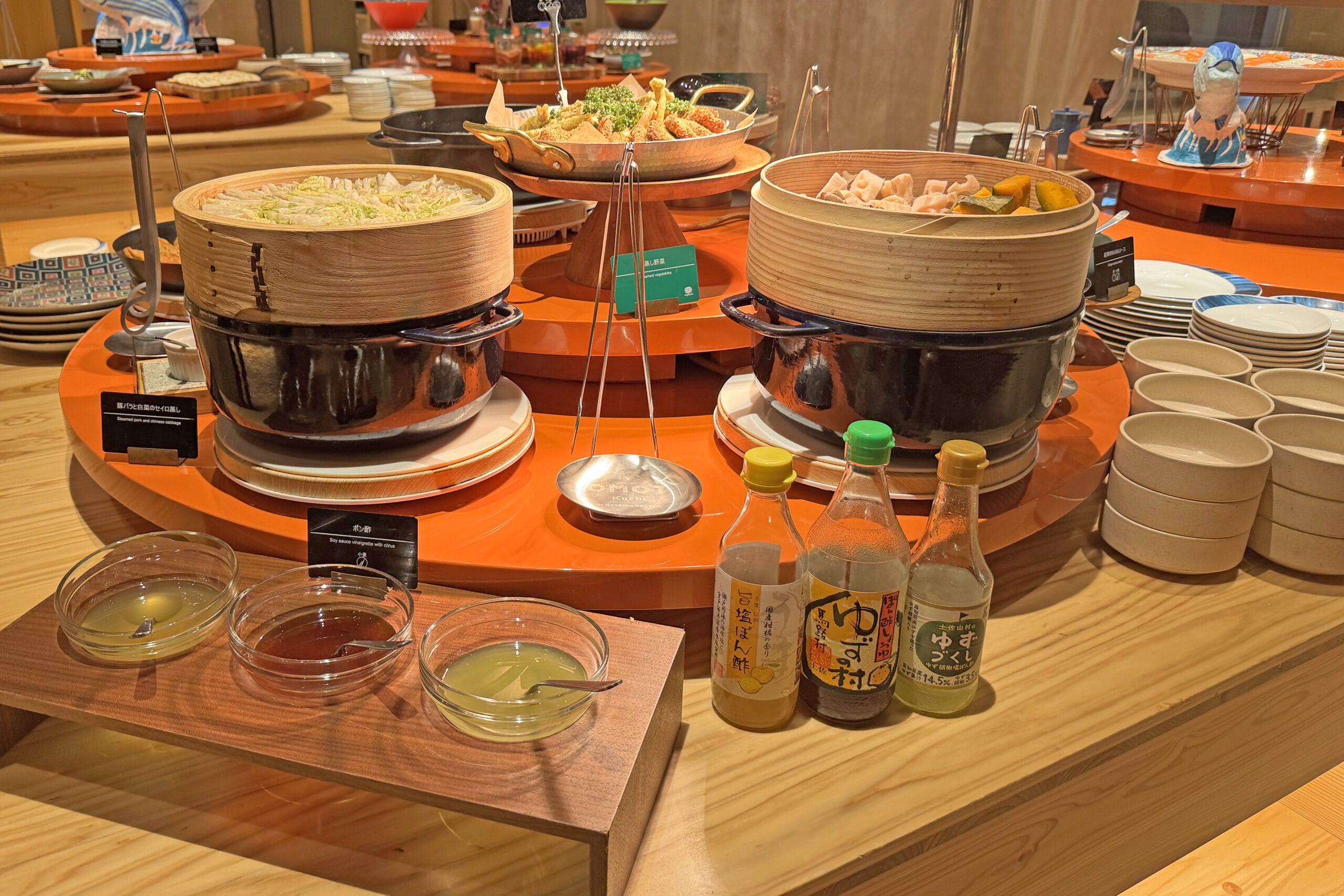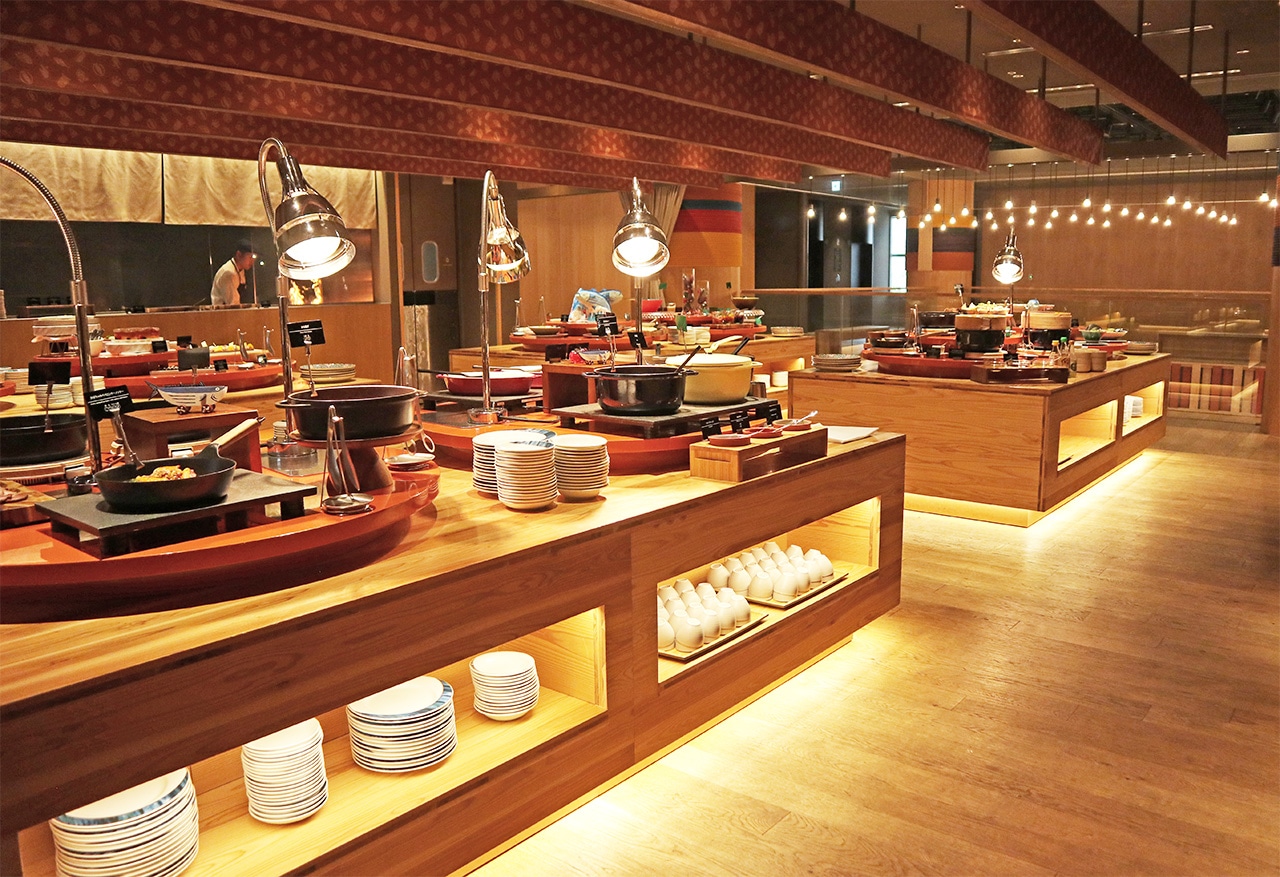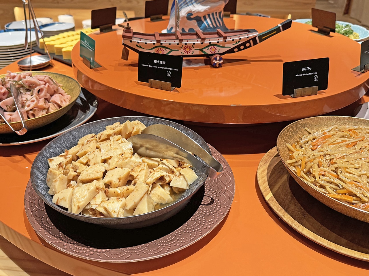 昨夜ディナービュッフェを楽しんだ「OMOダイニング」。朝も同じく、郷土料理をはじめ和食中心のメニューが50〜60種類並びます。(※宿泊者のみ利用可)