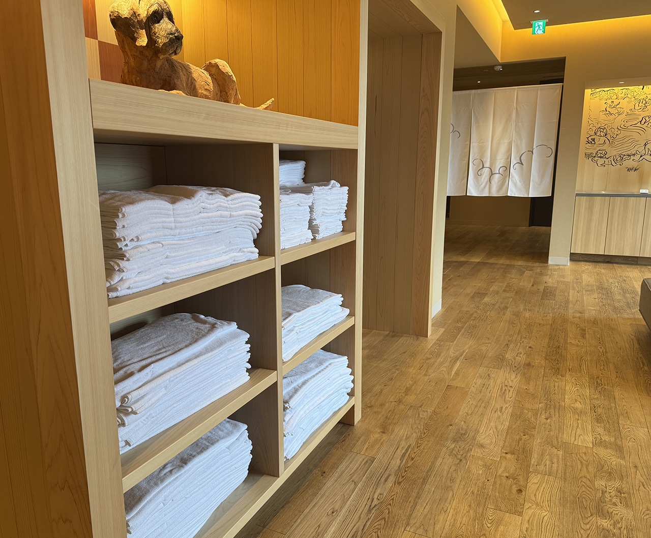 そんな思いで向かったのが大浴場「トサノユ」。番台をイメージして作られた入口の上には木彫りの土佐犬がお出迎えしてくれます。