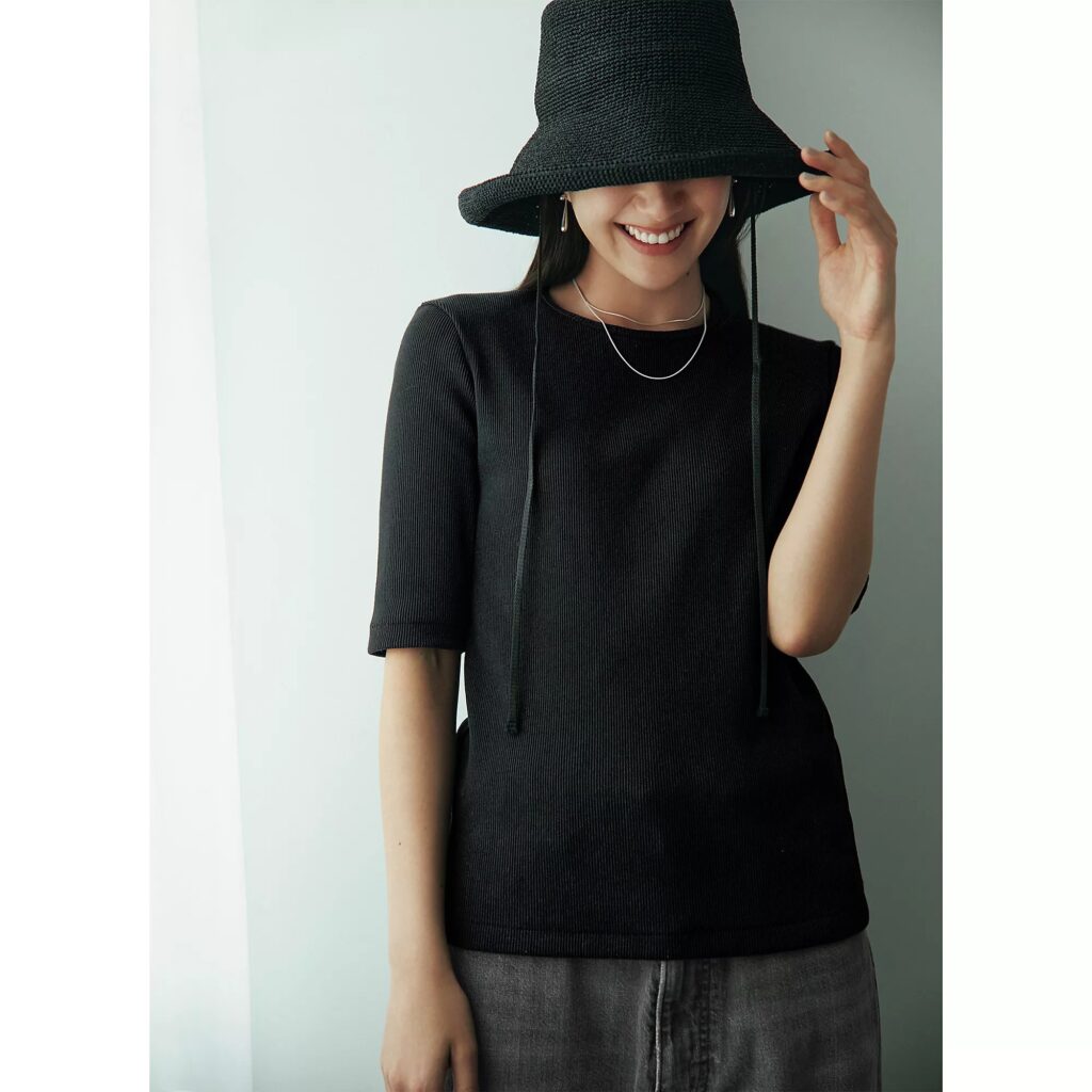 シルエットやディテールにとことんこだわって、ジュエリーが映える究極のシンプルTシャツが完成しました。ほどよいコンパクトさや体を華奢に見せてくれるリブ使いや五分丈袖など、ありそうでなかった一枚に!