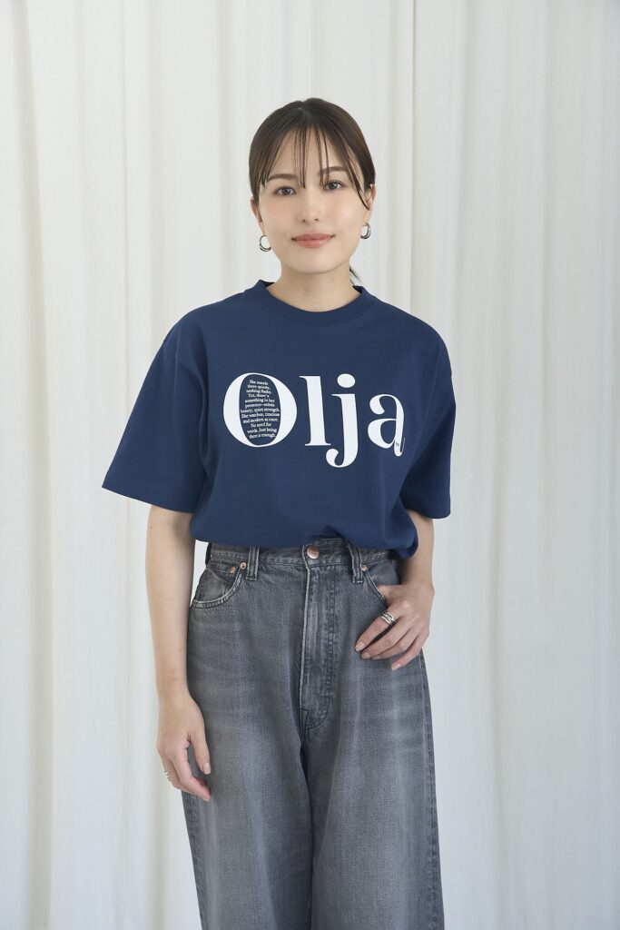 「今シーズンのラインナップは、”Olja(オーリャ)”という女の子のクローゼットをテーマに作っています。実は名前にはあまり意味はなく、単純に字面が可愛いなと思って、このロゴTシャツを作りました。あえてタフなコットン素材を使用し、ルーズなシルエットにしているので、サイズによってユニセックスで楽しめる一枚に。夏にはもちろん、秋冬シーズンにはミニスカートとタイツを合わせたら素敵だなって考えています」(ともさかりえさん)