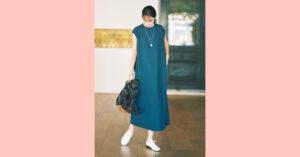 かごバッグとも好相性♡ 適度なハリと落ち感がある素材を使ったコクーンシルエットが、体をゆったりとおおい、ボディラインを自然にカバー。上品なカジュアルコーデもお手のもの Staff Credit 撮影/黒沼 諭(aosora) ヘア&メイク/加藤 恵 スタイリスト/大平典子 モデル/花楓 取材・文/葛畑祥子 ※モデルの身長は168㎝です ※こちらは2025年LEE6月号(5/7発売)「DEAR DA … 続きを読む 青みがかった洗練グリーンワンピースに視線集中!夏のおしゃれの高揚感を味わって/明日なに着る?