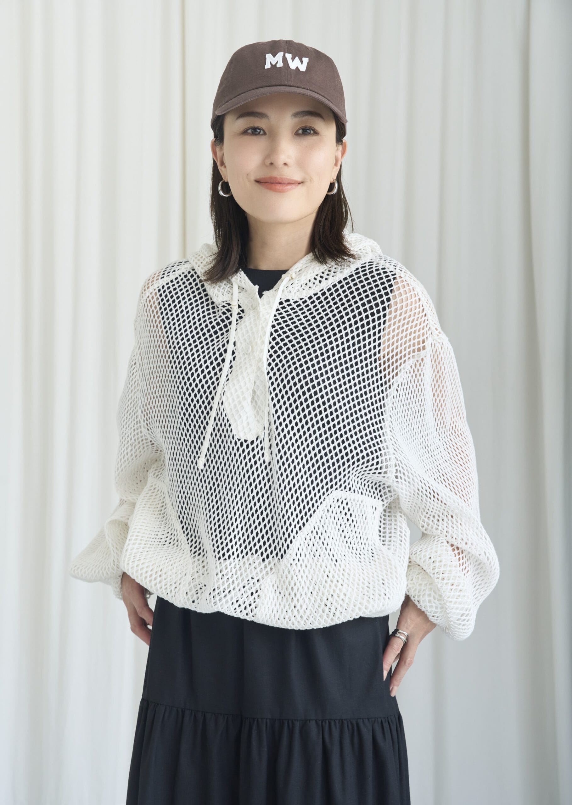 これから増えるアクティブなシーンに似合う、今年顔のメッシュパーカ。カットソーの上などに、さっと羽織って気楽に着こなせます。スポーティーさとフェミニンさが同居した程よい雰囲気。アウトドアだけでなく、タウンユースもできるおしゃれっぽさが漂う1着です。