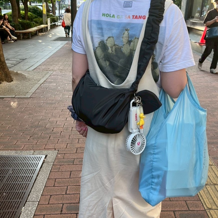 「ペットボトル、財布、ハンカチ、ポーチ、畳んだ日傘もしっかり入り、ハンディファンや、好きなチャームも付けて、手ぶらで楽しめるので、コンサートや夏フェスにも最適なボディバッグです!バッグ自体は軽くて、カジュアル過ぎず可愛さもあるので大人のコンサート参戦におすすめ。」(LEEマルシェHM)
