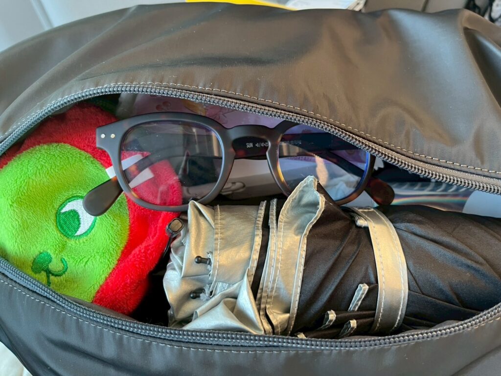 メイン室の他、スマホを収納するのに便利なポケットも。ふわふわの仕切り付きなので、夏はサングラスを入れるのもに良さそう。