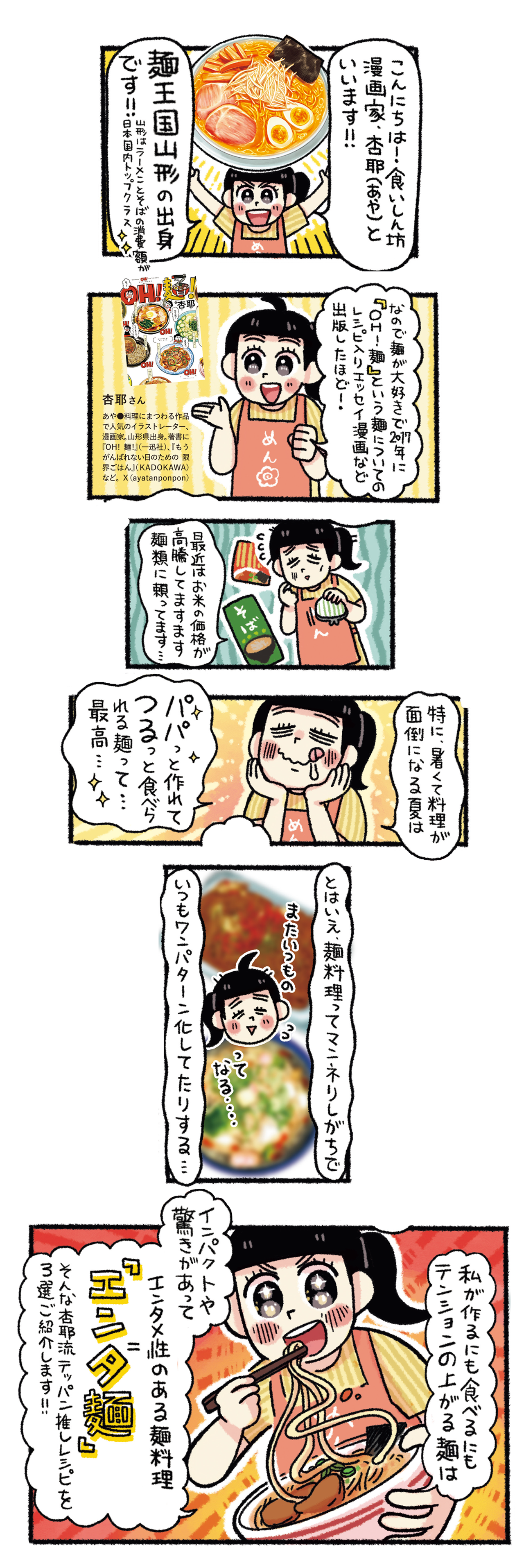 山形出身の食いしん坊漫画家・杏耶さんが、「エンタ麺」レシピ3選ご紹介!
