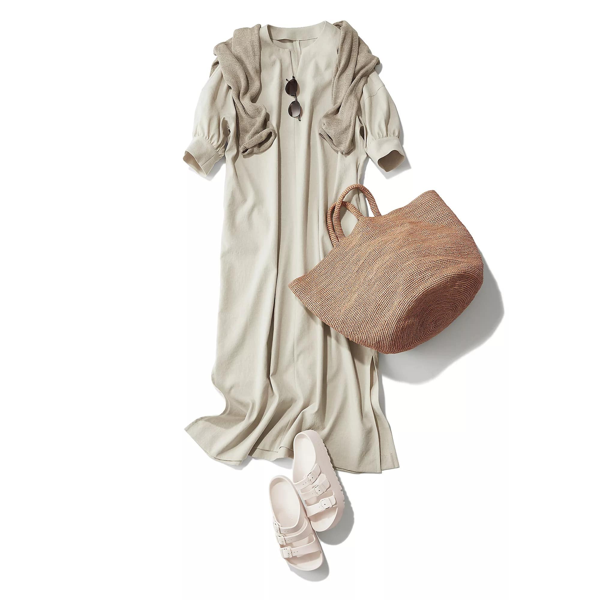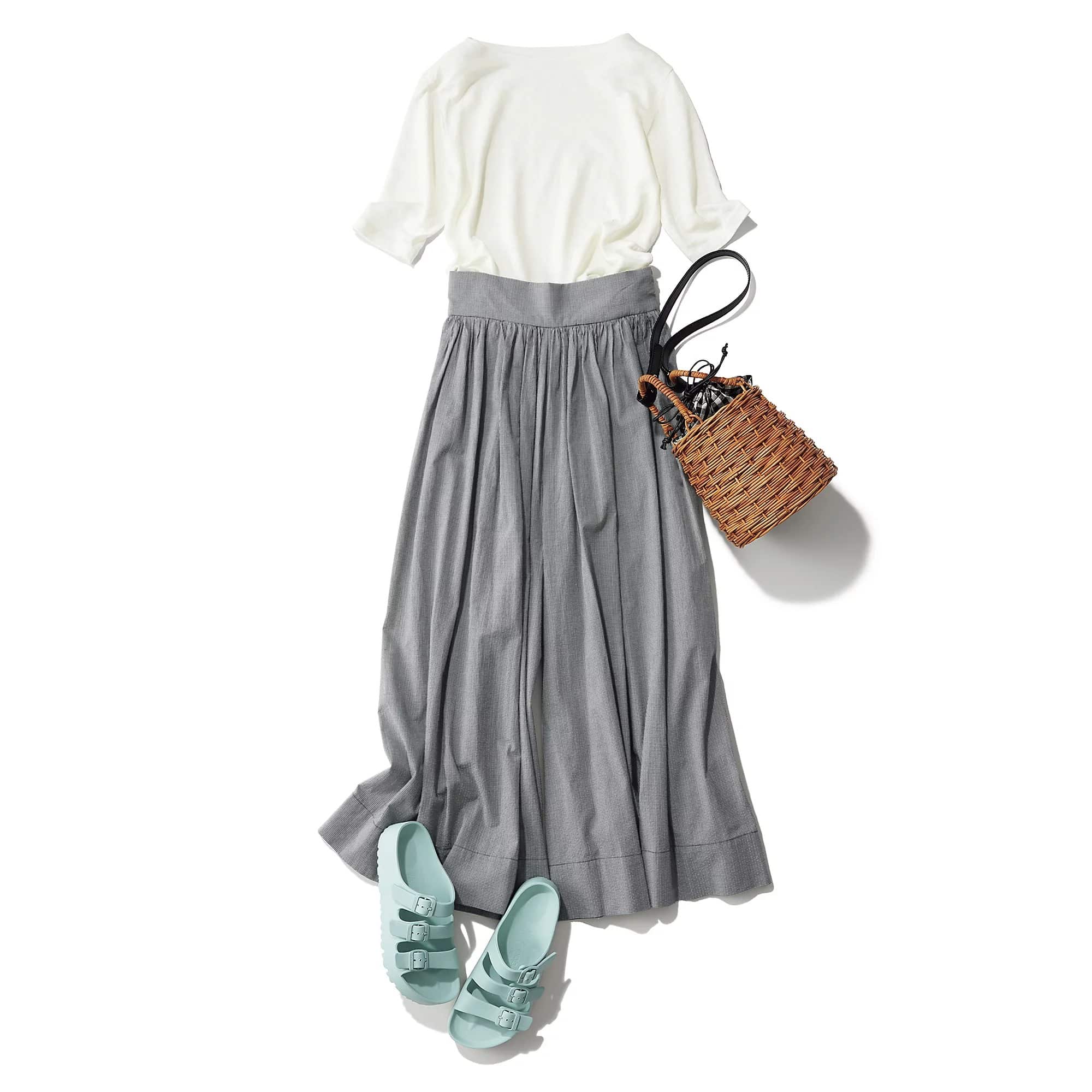 もちろん、スカートやワンピースとの相性も抜群。夏らしさと大人っぽさが両立できるので、スニーカーやパンプス代わりのこのスエードサンダルを合わせれば、好バランスです。