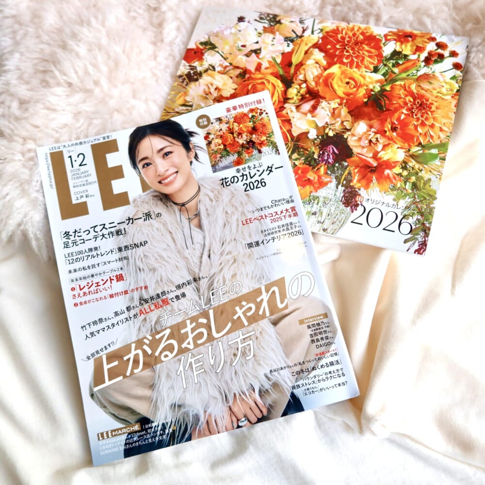 こんにちは、023 しーです。 LEE1.2月合併号、読みました! コンパクト版にも『幸せをよぶ花ごよみ』(2026年カレンダー)の付録が付いてきます♡ そして、幅広い情報が嬉しい