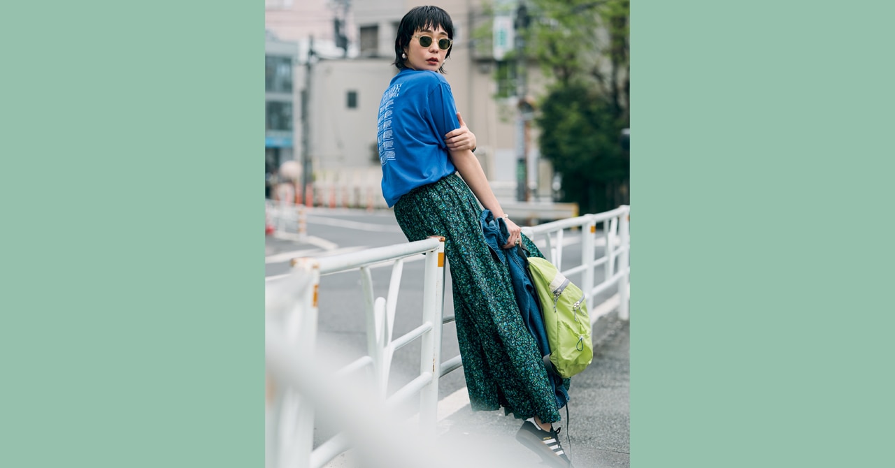 シルエットに特徴がある分、コーデの色数を少なめに抑えるとバランスよく。