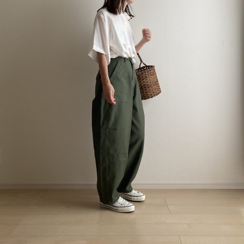 甘めのトップスを引き締め、洗練感を出せる旬のカーヴィーパンツがはきたいなぁと思っていました。いろいろ探して……ミリタリーテイストがプラスされたカーヴィーシルエットのパンツを12closet (トゥエルブクローゼット)で見つけました♡