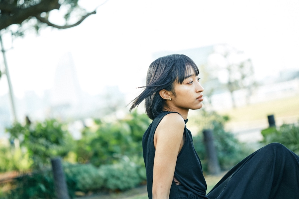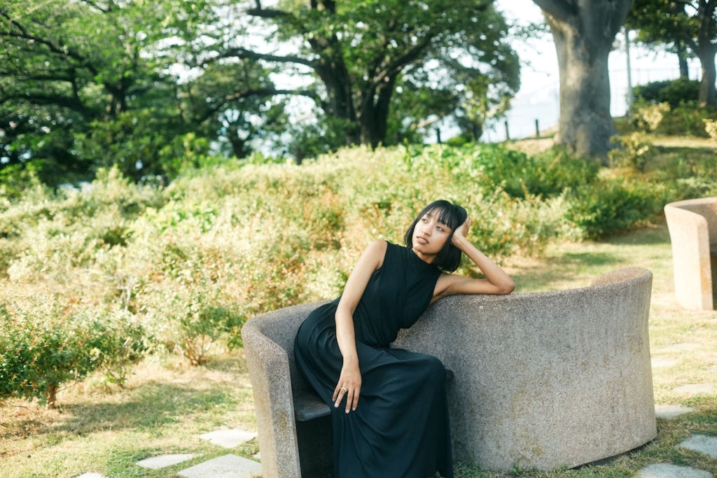 引き続き、文筆家の伊藤亜和さんに話を聞きます。取材後の撮影は、伊藤さんが生まれ育った横浜の山下公園で行われました。咲き誇る花々と新緑がまぶしい公園をゆったりと歩く姿は、まるで絵画のような美しさです。「自分の顔で一番好きなところは?」という質問に「目かなあ」と伊藤さん。大きな瞳に映る横浜の景色、この景色を見ながら28歳までをこの場所で過ごしました。