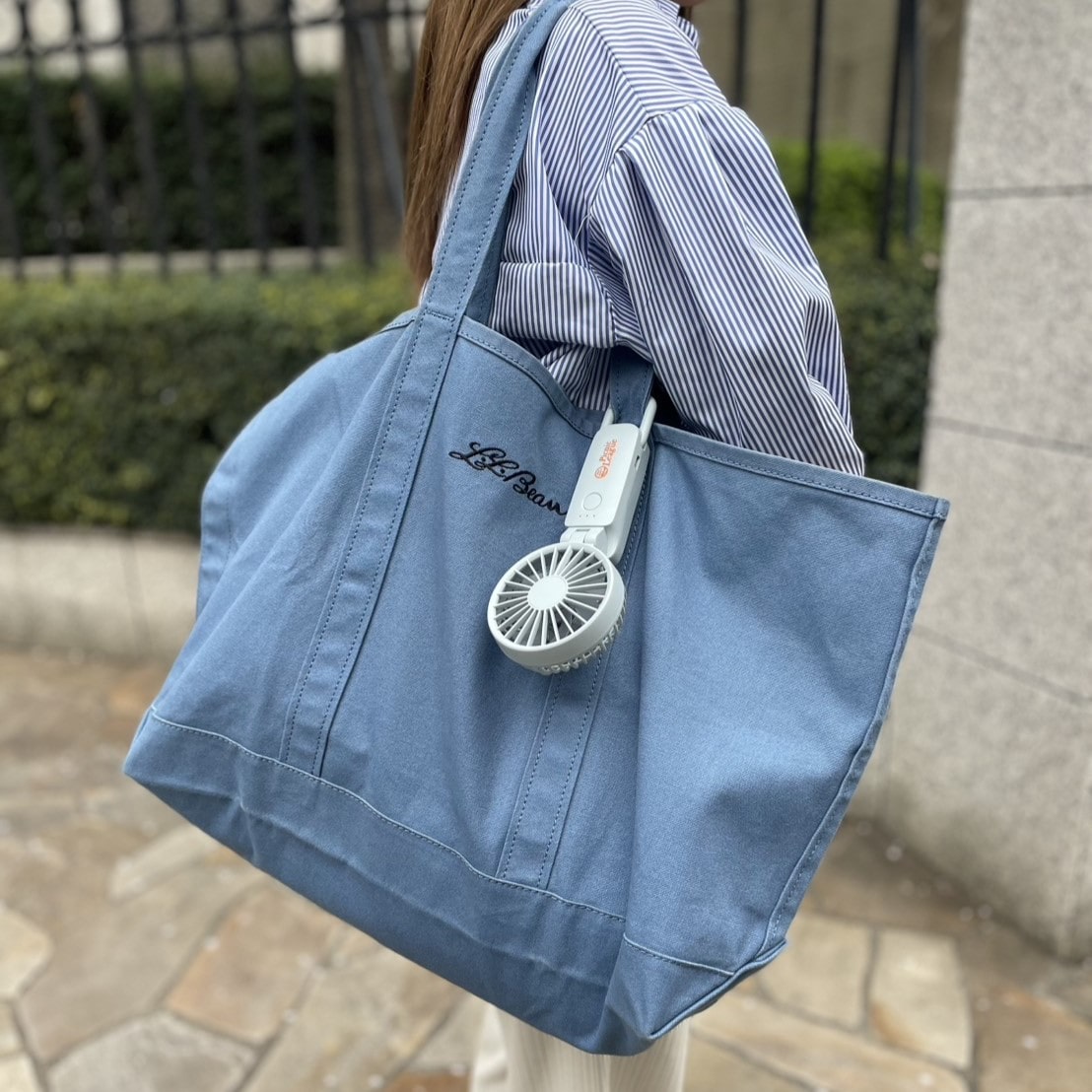 「LEE別注のハンディファンが手放せません!独自の2重反転ファンを採用し、コンパクトで軽量。風量は弱、中、強、ターボの4 段階で調節できます。弱は本当に静かで、職場でも汗がひくまでかけっぱなし状態!静かなので、周りに気をつかうことなく使うことができています」
