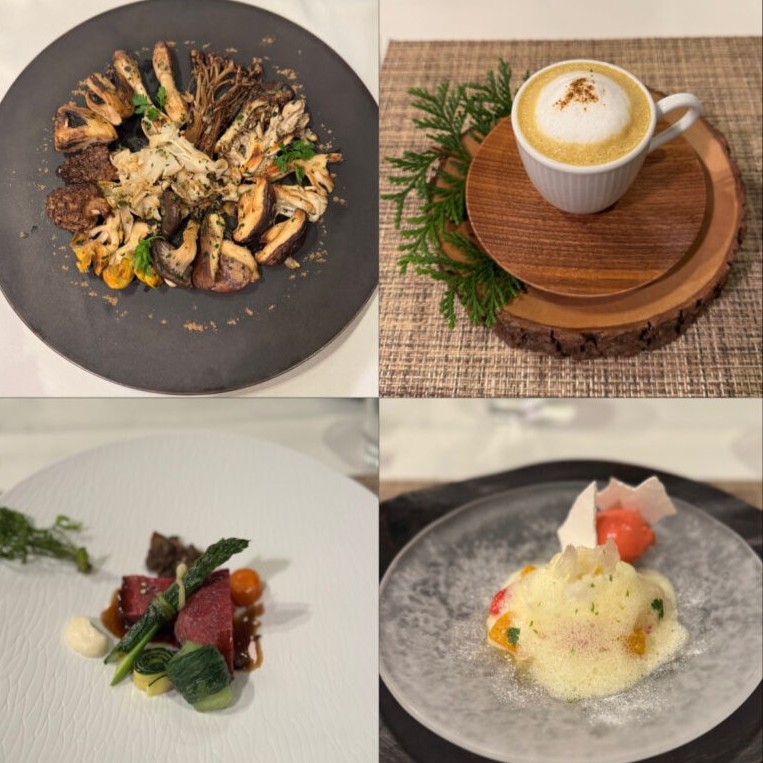 「お料理がとにかく美しくて、どれも絶品!前菜からデザートまで、すべての料理にきのこのエッセンスが生かされていて、ひと皿ごとに『わあ……!』と声が出てしまうほど感動。