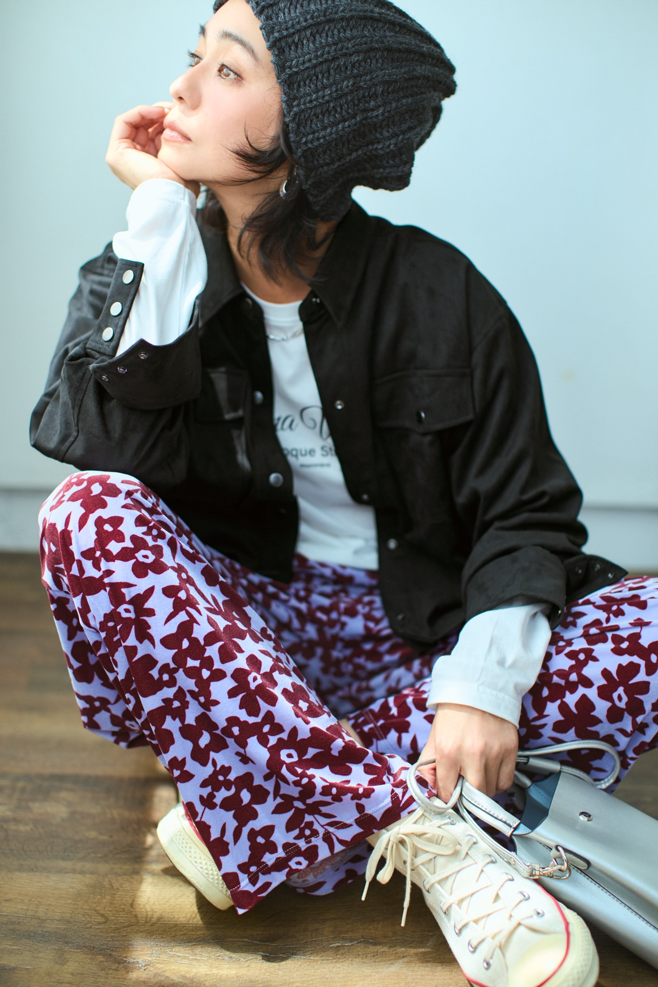一枚で、羽織りで、カーデやカットソーなどを重ねて……と、気温や天候に合わせていろいろなアレンジができ、“映えるワンツー”として春から人気だったロンT+柄パンツの組み合わせも、たちまち秋らしく。