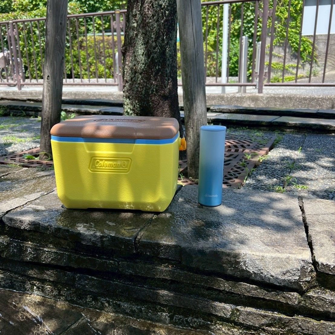 もう一つは持ち運びしやすいクーラーボックス(写真左)。ゼリーや栄養ドリンクなど入れておけば、炎天下でもひんやり飲料が手に入ります。この2つは夏中活躍する予感!