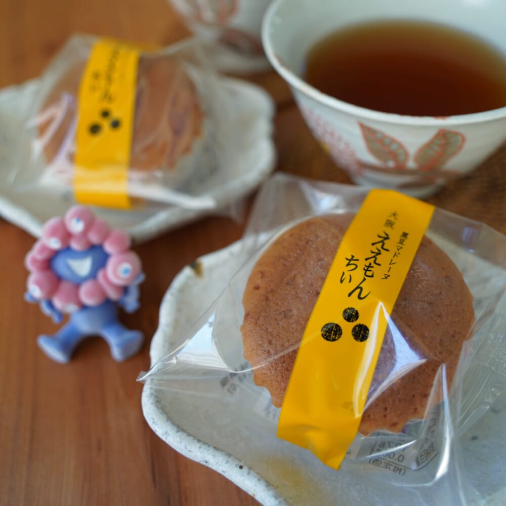 「こちらも夫の大阪出張土産。私がリクエストして新大阪駅のお土産屋さんで買ってきてもらった、『五感』という人気洋菓子店の黒豆マドレーヌ『ええもんちぃ』。素朴なマドレーヌの中に、国産大粒の黒大豆(丹波黒)が入っています。『ええもんちぃ』とは、小さなええもん(よいもの)、という意味みたいです。名前からして、なんだか大阪らしさたっぷり!」