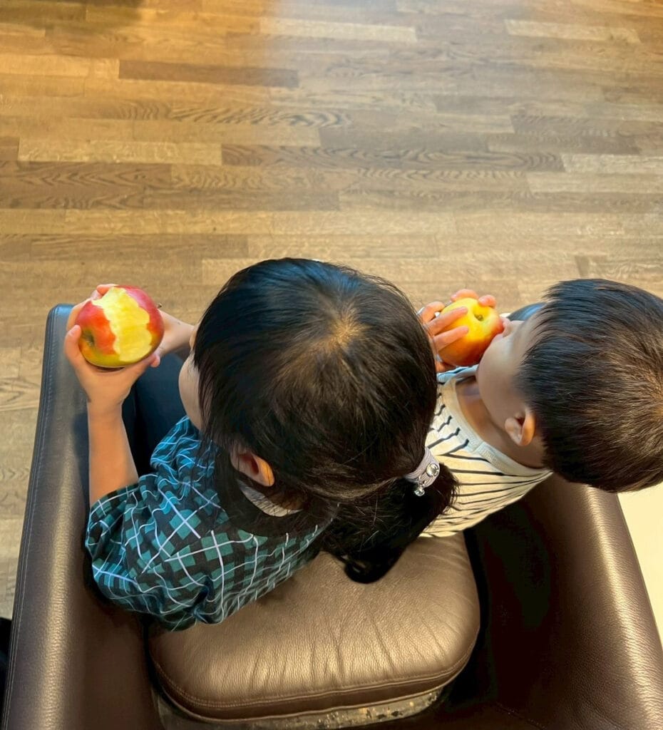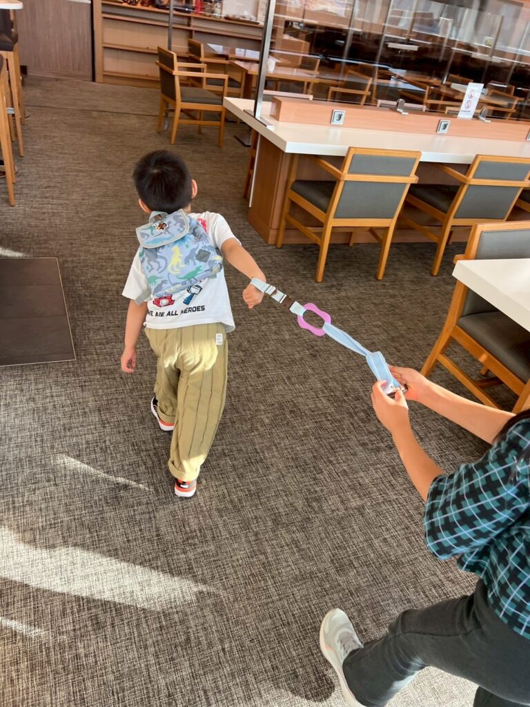 抱っこをするには息子も大きくなったので、日本でオンラインで購入した迷子防止ハーネスを導入したのですが、おとなしく持ってくれるはずもなく(苦笑)。逆に娘がぐいぐい引っ張られています。
