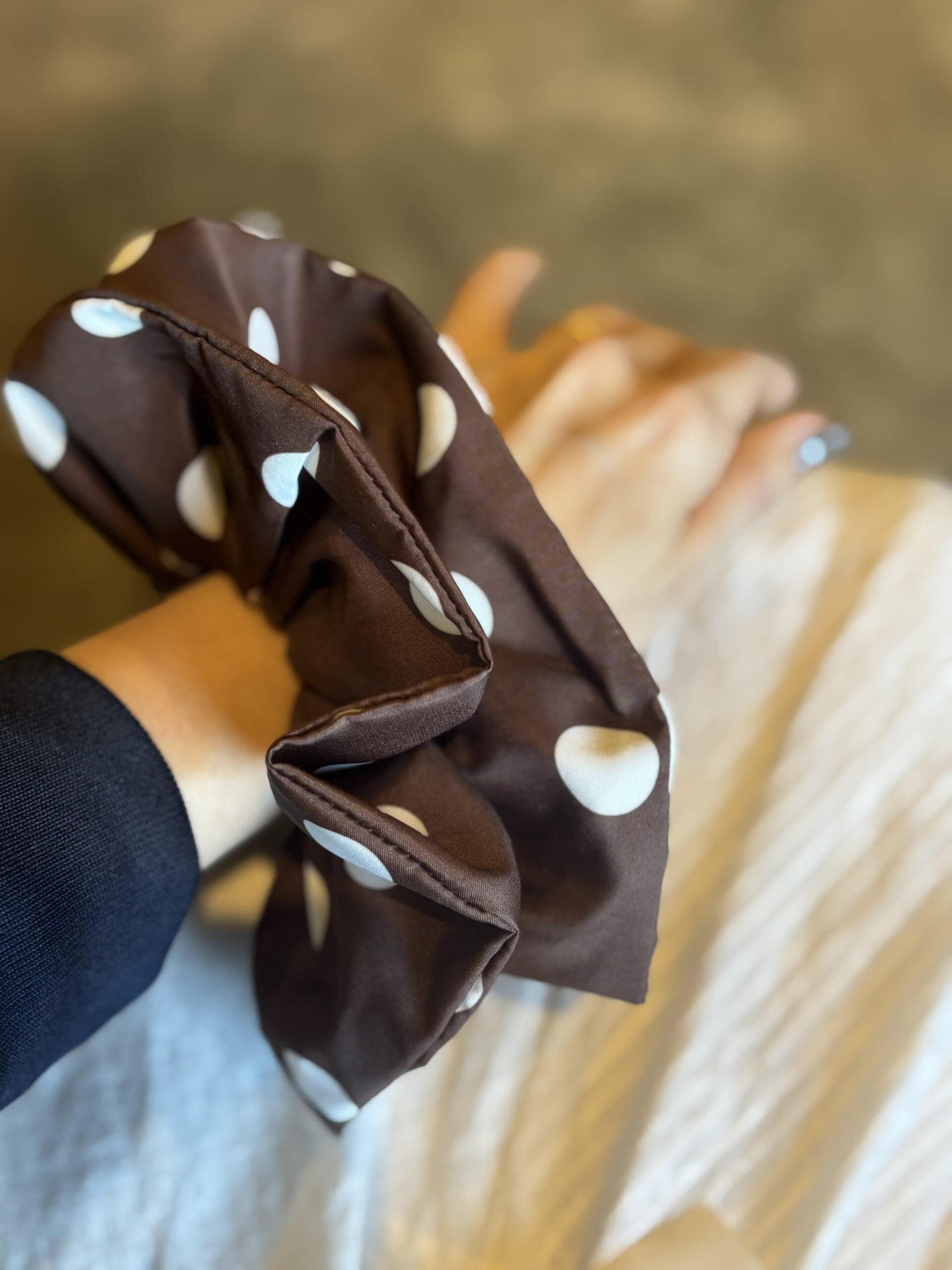 小雨の日の送迎は、撥水機能付きのアウターの出番。カフェでのひとり時間も上機嫌!