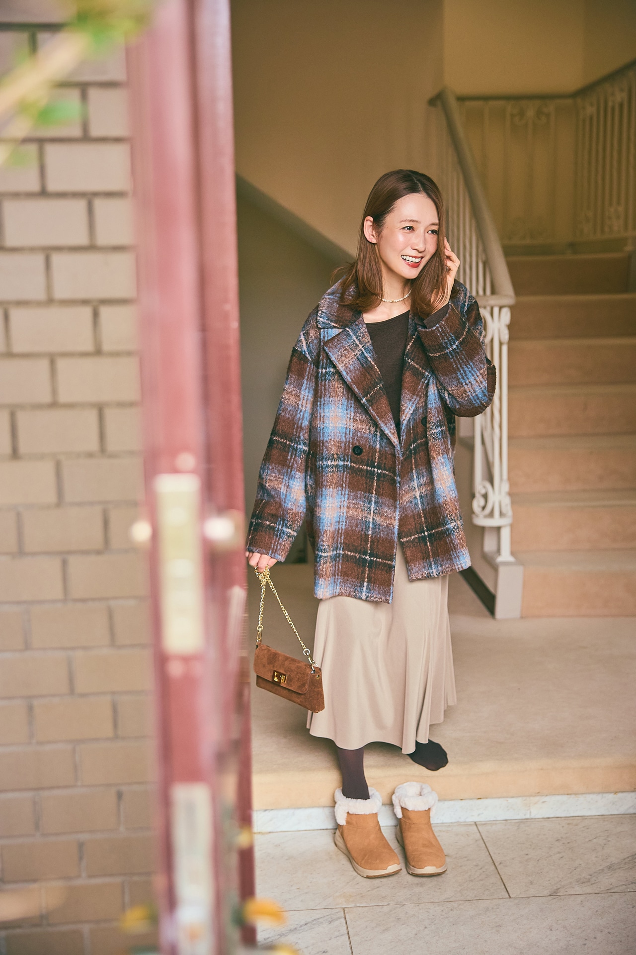 見た目の可愛さや暖かな履き心地はもちろん、絶妙なショート丈も魅力の[オンザゴー ステラ – ダフネ]のムートンブーツ。ロングスカートやワイドパンツなどあらゆる流行ボトムとバランスよく履けるので、コーディネートが簡単! ちょっぴりおしゃれに気合いが入る女友達とのお出かけにも最適です。ウキウキと準備していたらもうこんな時間!! そんな慌ただしい外出時にも、立ったままするっと履けるこの一足はやっぱり便利♡