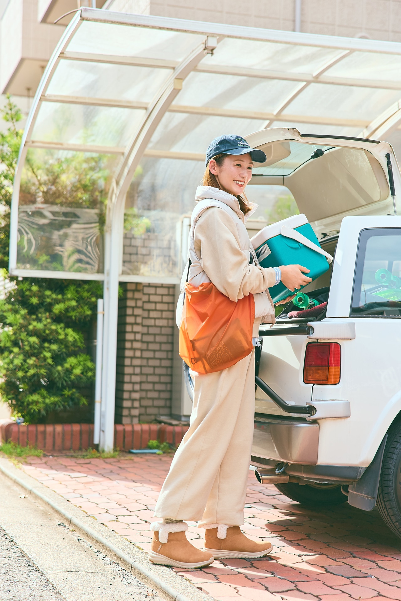 荷物の積み込みで、部屋と車を行ったり来たり。何度も靴を脱ぎ履きしないといけないようなシーンでも、手を使わずに履ける[オンザゴー ステラ – ダフネ]のブーツがあればノンストレス! 日中もレジャーシートの上でくつろいだり、帰りは日帰り温泉に立ち寄ったり……何かと“脱ぎ履き”の多い家族とのお出かけだからこそ、こんなハンズフリーな一足が頼りになります。防水加工も施されているので、天候が不安定な時でも安心!