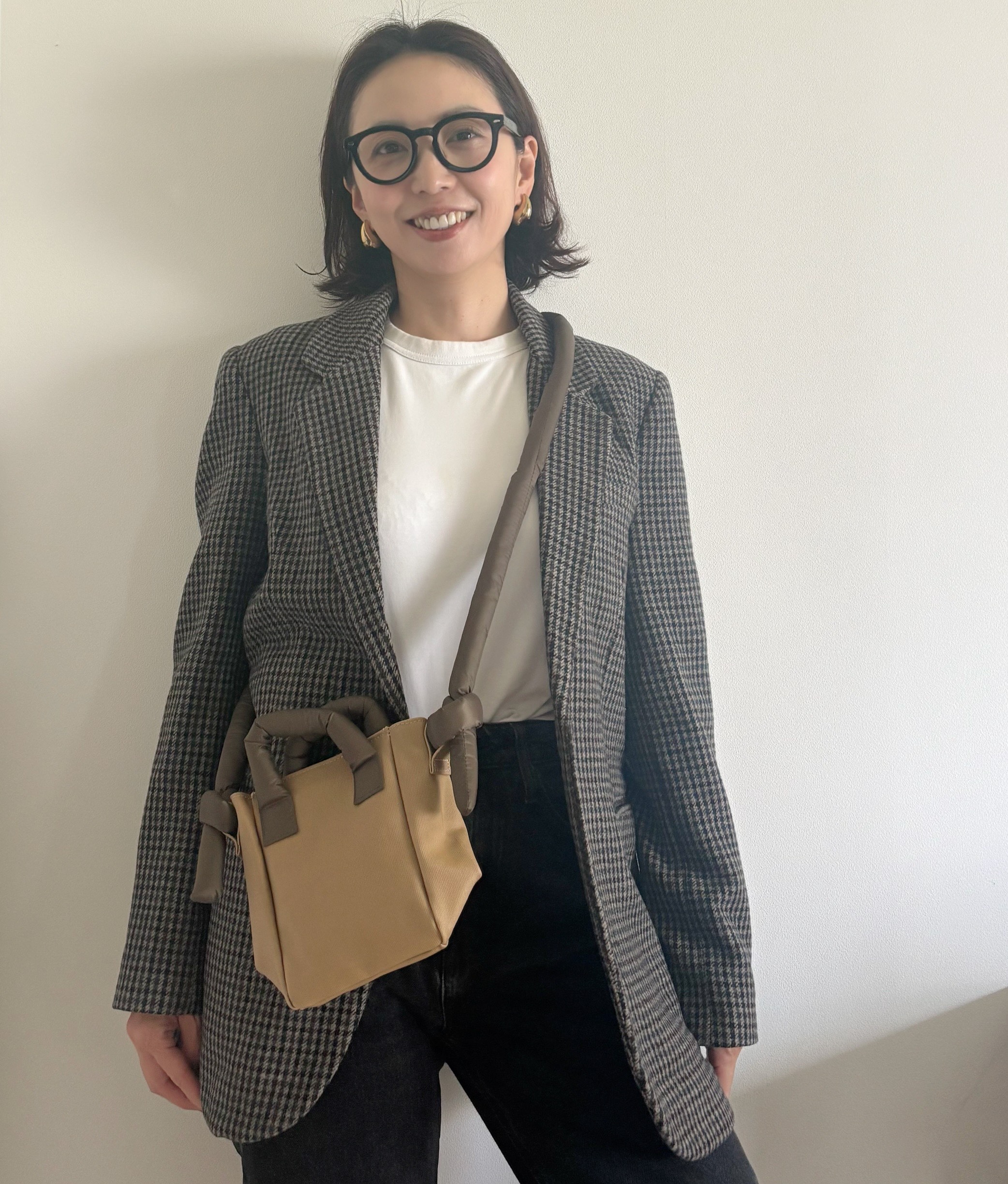 まるで食パンをスライスしたようなユニークなフォルム。ハンドルには中綿が入っていて、モチモチした手触り。使うたびにじわじわと愛着が深まっていくのもこのバッグならでは♡ ニットやコートなど秋冬の装いにもすんなりなじんで、コーデに遊び心を添えてくれますよ。