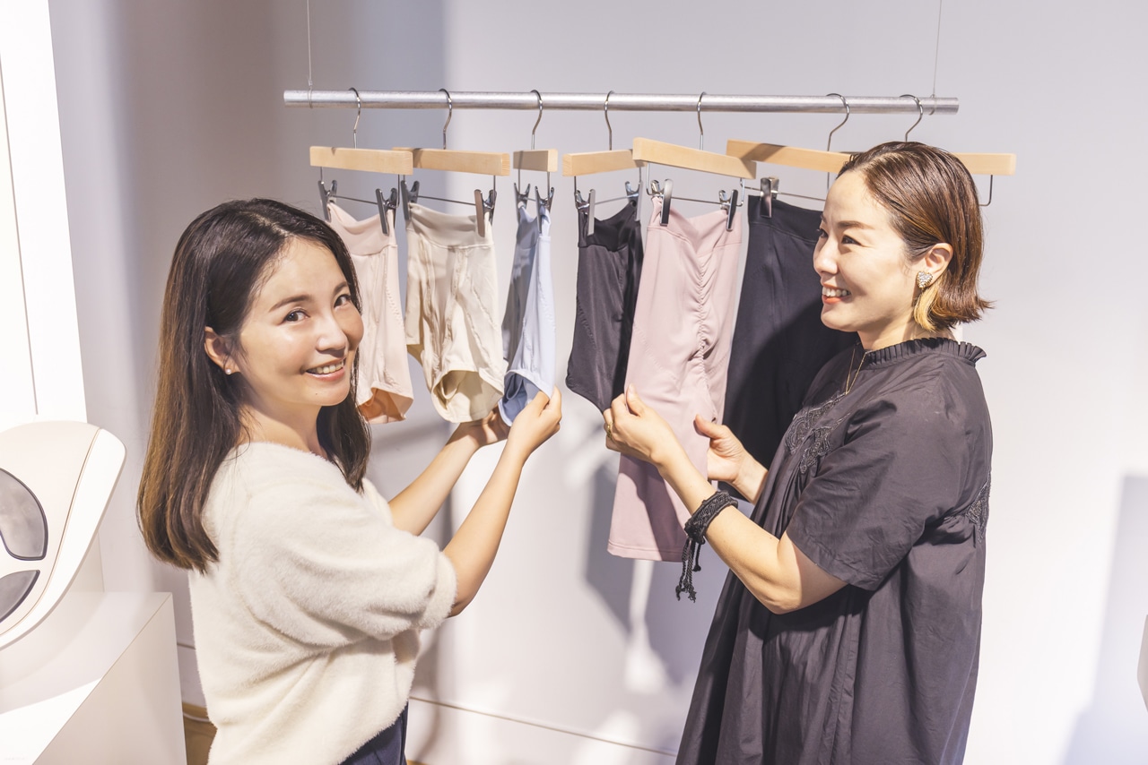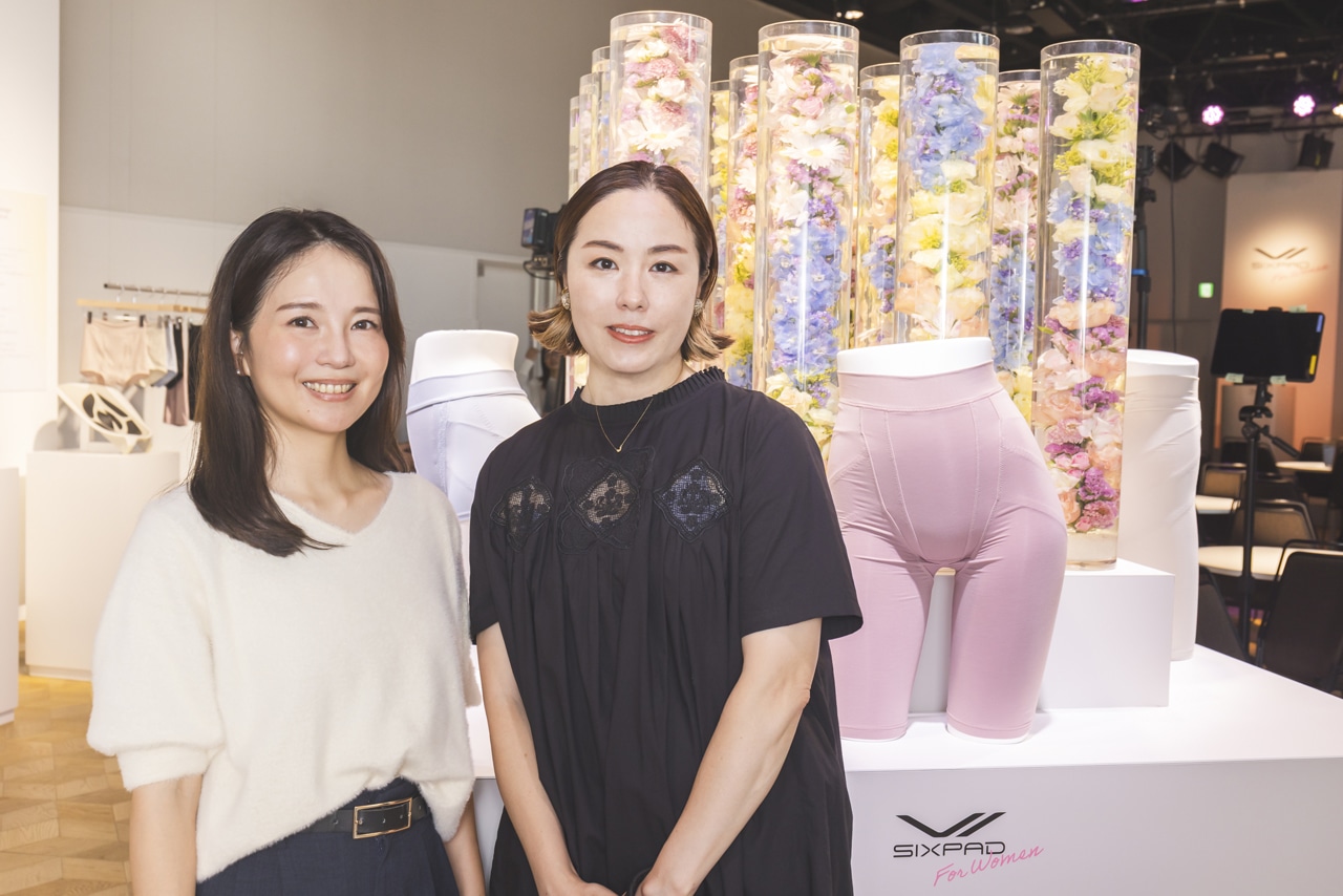 SIXPADと聞くとブラックのイメージを持ちがちですが、SIXPAD for Womenの世界観を表現した会場は、淡いカラーで彩られた華やかなディスプレイが施されていました。「SIXPAD 骨盤底筋ケアガードル」や「SIXPAD 骨盤底筋ケアショーツ」にも、そういった気分の上がるカラー展開も用意されています。
