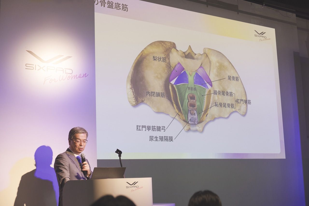 続いて登壇したのは、日本大学医学部 泌尿器科学系泌尿器科学分野 主任教授の髙橋 悟さん。泌尿器科の観点から、骨盤底筋の大切さ について講演しました。
