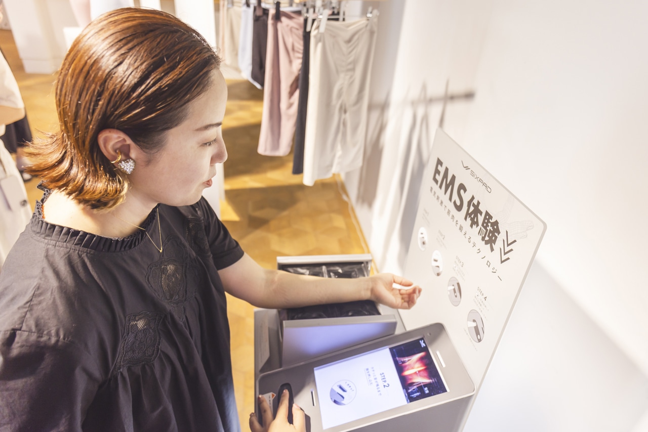 SIXPADが誇るEMSのパワーを体感できるマシンも。「筋肉に想像以上の刺激がきて、EMSの威力を実感!」(No.036ちゅーこさん) 「『SIXPAD Perine Fit』(上写真)では陰部周辺にこのEMSをしっかり当てられるよう設計されているんですね。骨盤底筋のケアに効きそうです」(TBりーぬさん)