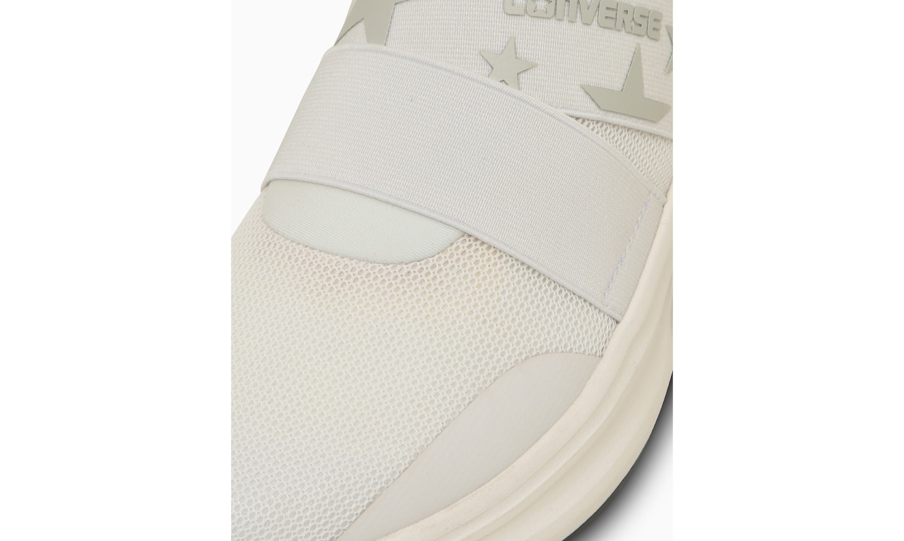 かかと部分には、コンバース独自のスリット入りヒールカウンターを採用。足を入れるとスリットが自然に後ろへ倒れてスムーズにはけ、履いた後は元に戻ってかかとをしっかり支えてくれる仕組み。ラクに着脱できるのに、歩くときはブレずに安定感をキープする頼もしさも兼ね備えています。