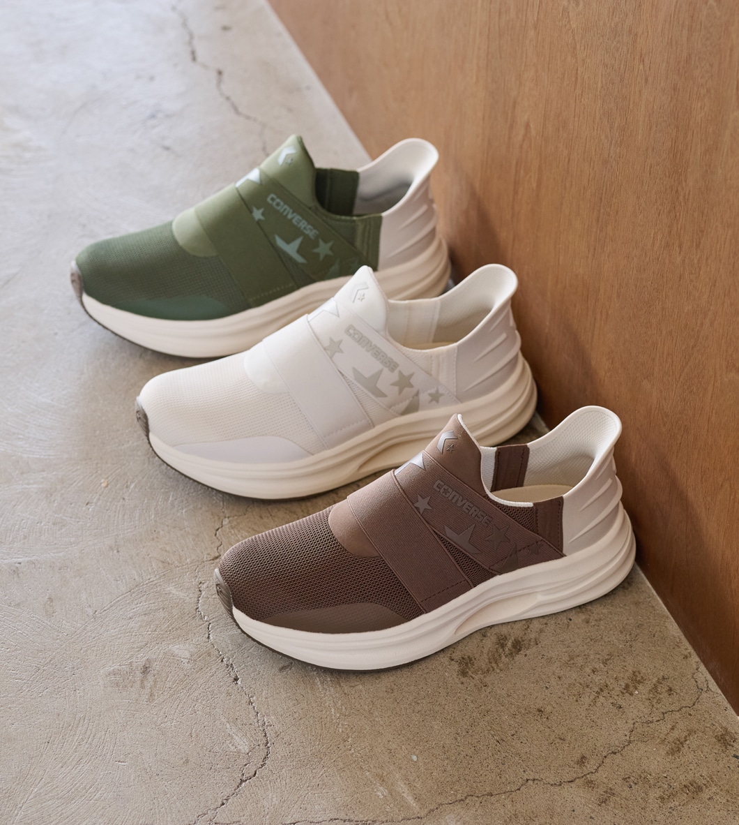 軽やかな履き心地、シーンを選ばないデザイン、そして装いを更新してくれる洒落感。秋の街歩きやアウトドアなど、おでかけが増えるこれからの季節に頼もしいコンバースの「スリットスライド」シリーズ。ぜひお気に入りの新作を取り入れて、心地よさと一緒に秋のおしゃれを楽しんでくださいね。