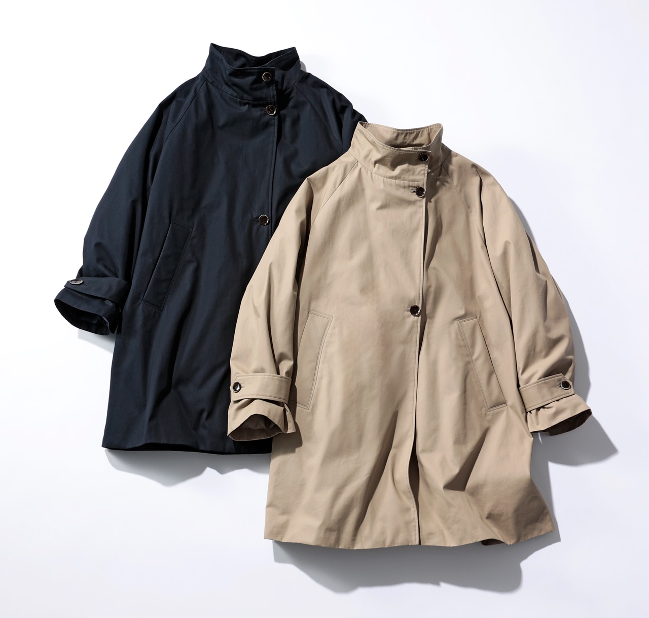 撥水加工を施したコットンギャバ素材を採用した、人気のダウン入りコートが、今シーズンも登場。パッと見ではダウン入りとは分からないほどのスタイリッシュなデザインがロングセラーを支えています。すっきりとしたスタンドカラーが今季らしさの象徴に。背面にはトレンチコートを彷彿とさせるアンブレラヨークもあしらわれ、都会的な見た目を後押し。厚手のニットにも羽織りやすい太めのアームホールもうれしい限り!