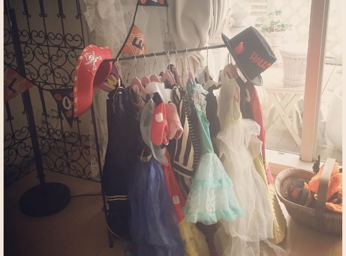 ゲストにコスチュームを買い揃えてもらうのはなんだか気が引けるので…自宅にあるドレスや人気キャラクターのコスチュームをまとめて、みんなが自由に選べるようなコーナーを作ってひと工夫。