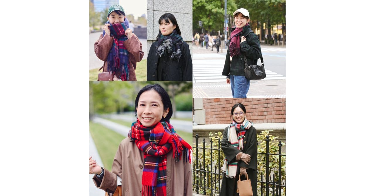 さし色の赤、馴染むグレンチェック、キャップとカラーリンク…おしゃれ上手の「チェックマフラー・ストールコーデ」5人分!【LEE100人隊のスナップ・2026冬】
